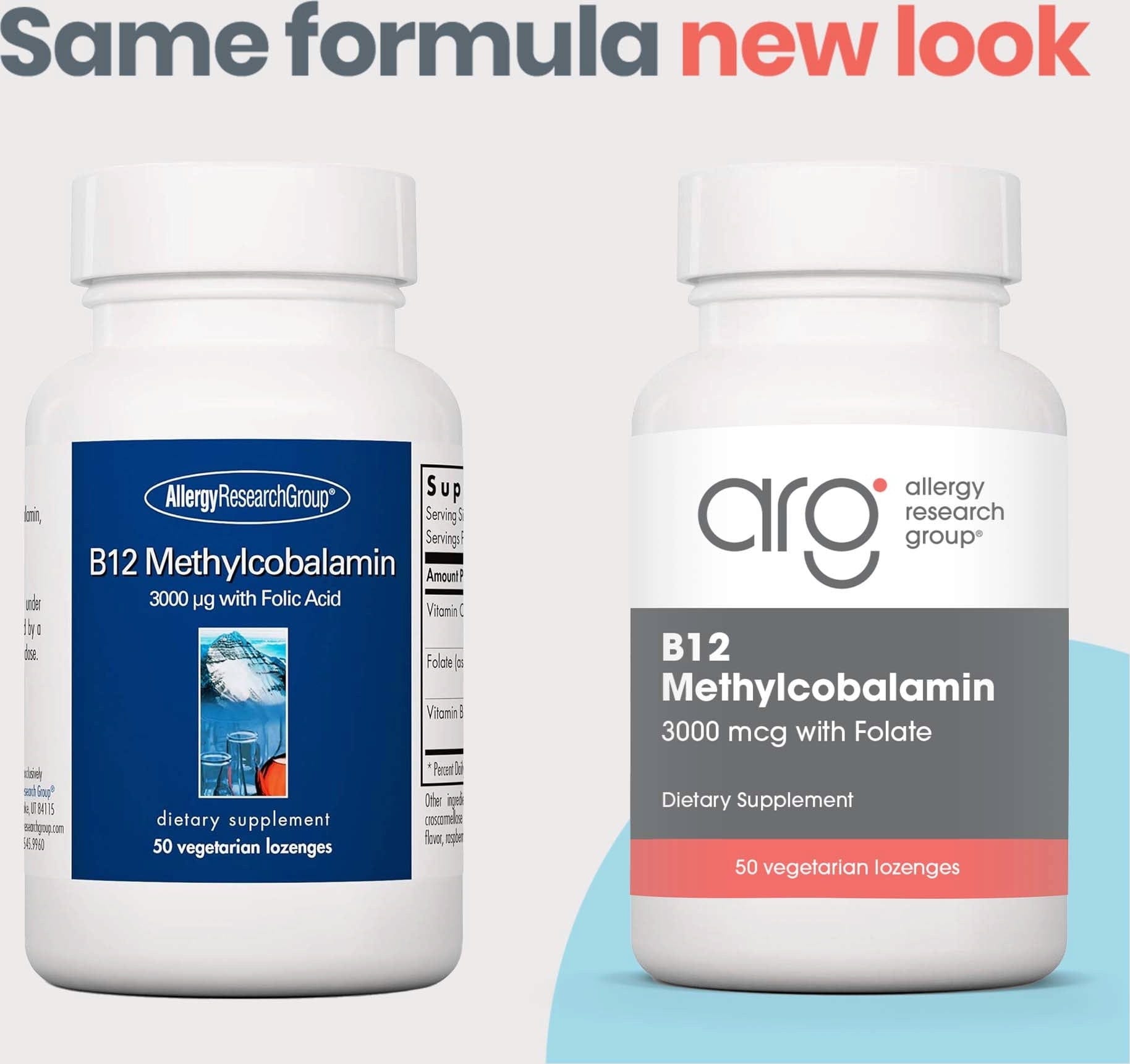 B12 metilkobalamin iz Allergy Research Group sadrži vitamin B12 u obliku metilkobalamina. Ovaj B12 metilkobalamin je kombiniran s folnom kiselinom i vitaminom C.