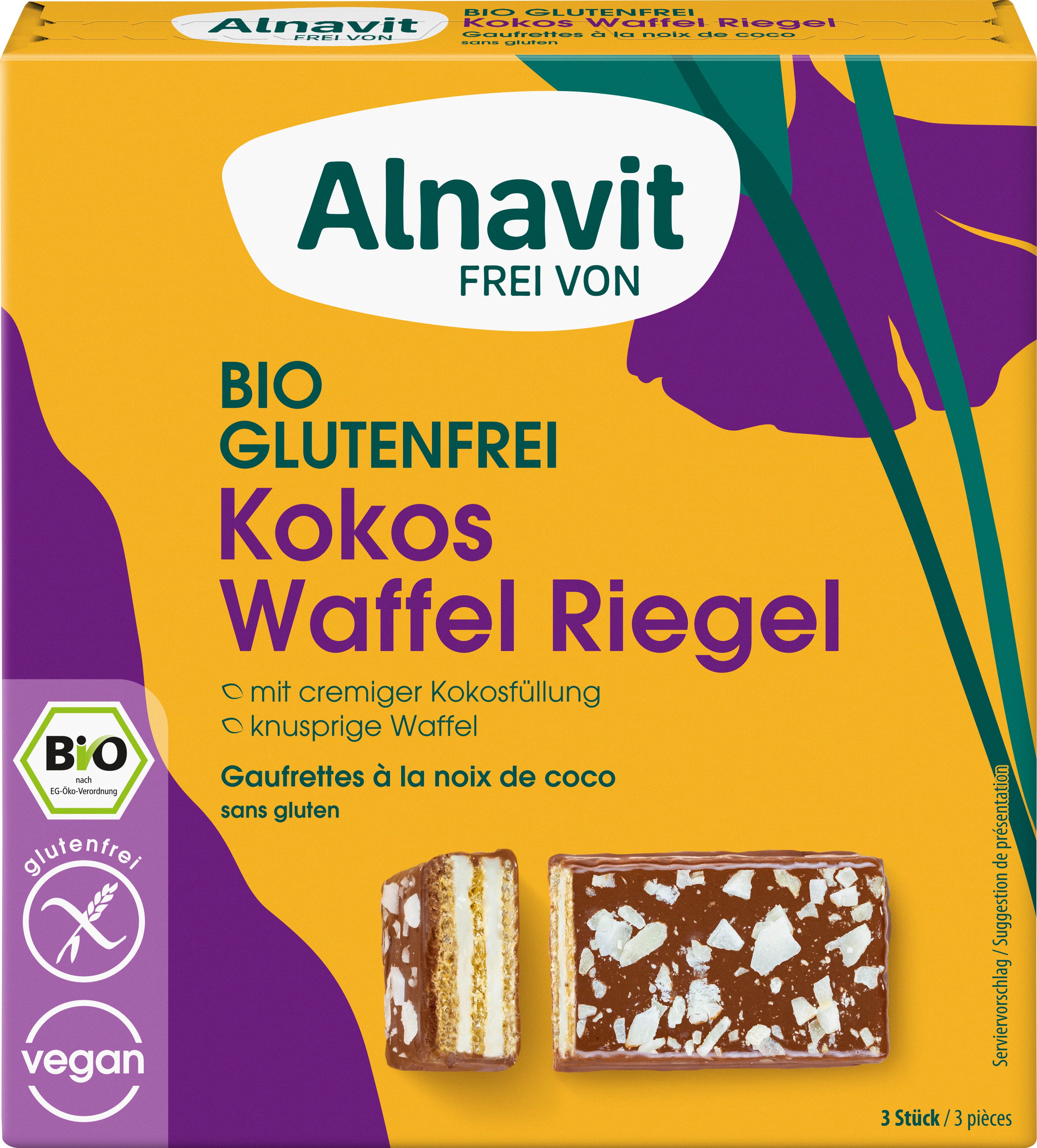 Obožavate kokos? Onda je vafel pločica s kokosom marke Alnavit savršen snack za vas. S 52 % kokosa, hrskavim vaflom i nježnim čokoladnim premazom, čisti je podsjetnik na godišnji odmor. Pojedinačno zapakirane pločice idealne su za ponijeti – u potpunosti bez palminog ulja.