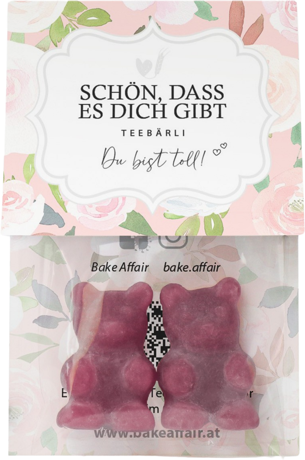 Recite svojim najdražima koliko ih volite. S čajnim medvjedićima "Schön, dass es dich gibt" (Divno je što postojiš) brenda Bake Affair možete pokloniti poruku punu ljubavi. Pakiranje uz to nosi natpis "Du bist toll" (Super si). Na taj ćete način svojim najdražima zagarantirano izmamiti osmijeh na lice. Čajni medvjedići namijenjeni su za otapanje u vrućoj vodi, a naravno mogu se i izravno grickati.