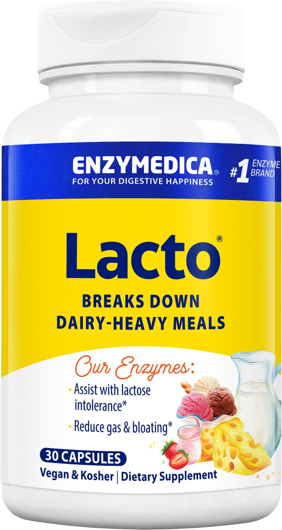 Uz Lacto™ kapsule Enzymedice jednostavno izbjegavate podmukla svojstva mliječnog šećera. Zahvaljujući Thera-blend™ procesu, koji vješto kombinira nekoliko sojeva enzima (u ovom slučaju 8), to je sada moguće.