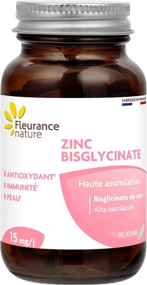 Cink je element u tragovima s antioksidativnim svojstvima. S optimalnom dnevnom dozom od 15 mg cinka, jedna kapsula pokriva 150% preporučene dnevne potrebe. Osim toga, njegov bisglicinatni oblik, koji se smatra najpristupačnijim oblikom za tijelo, osigurava optimalnu apsorpciju u usporedbi s drugim oblicima cinka.