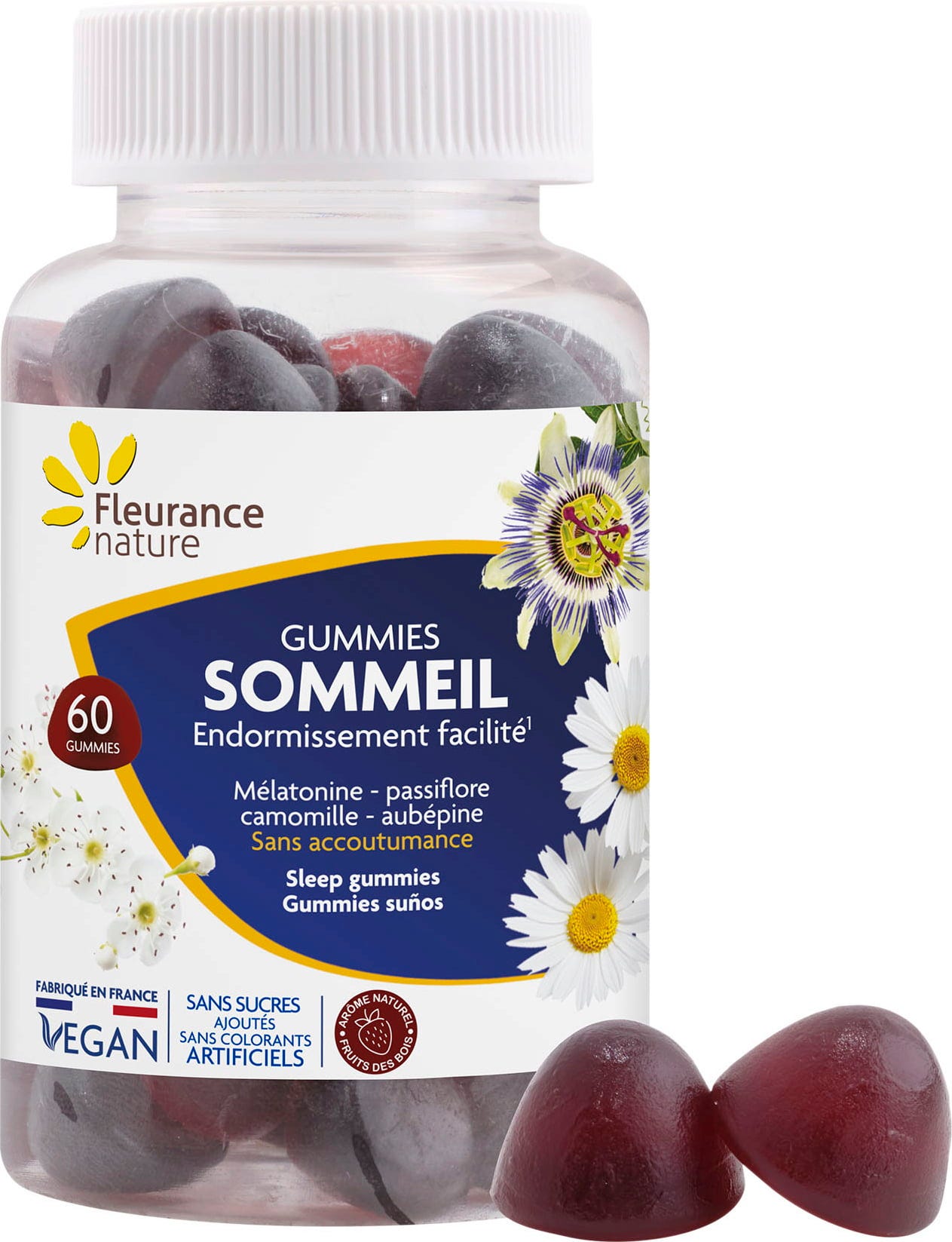 Neredovit san, stres, buka, svjetlost ili jet lag mogu značajno smanjiti proizvodnju melatonina, prirodnog hormona poznatog kao "hormon spavanja". Ovi gumeni bomboni sadrže melatonin i kombinaciju biljaka, uključujući pasifloru, kamilicu i glog. Praktični i lako žvakaći gumeni bomboni s ukusnim okusom šumskog voća ne sadrže šećer.