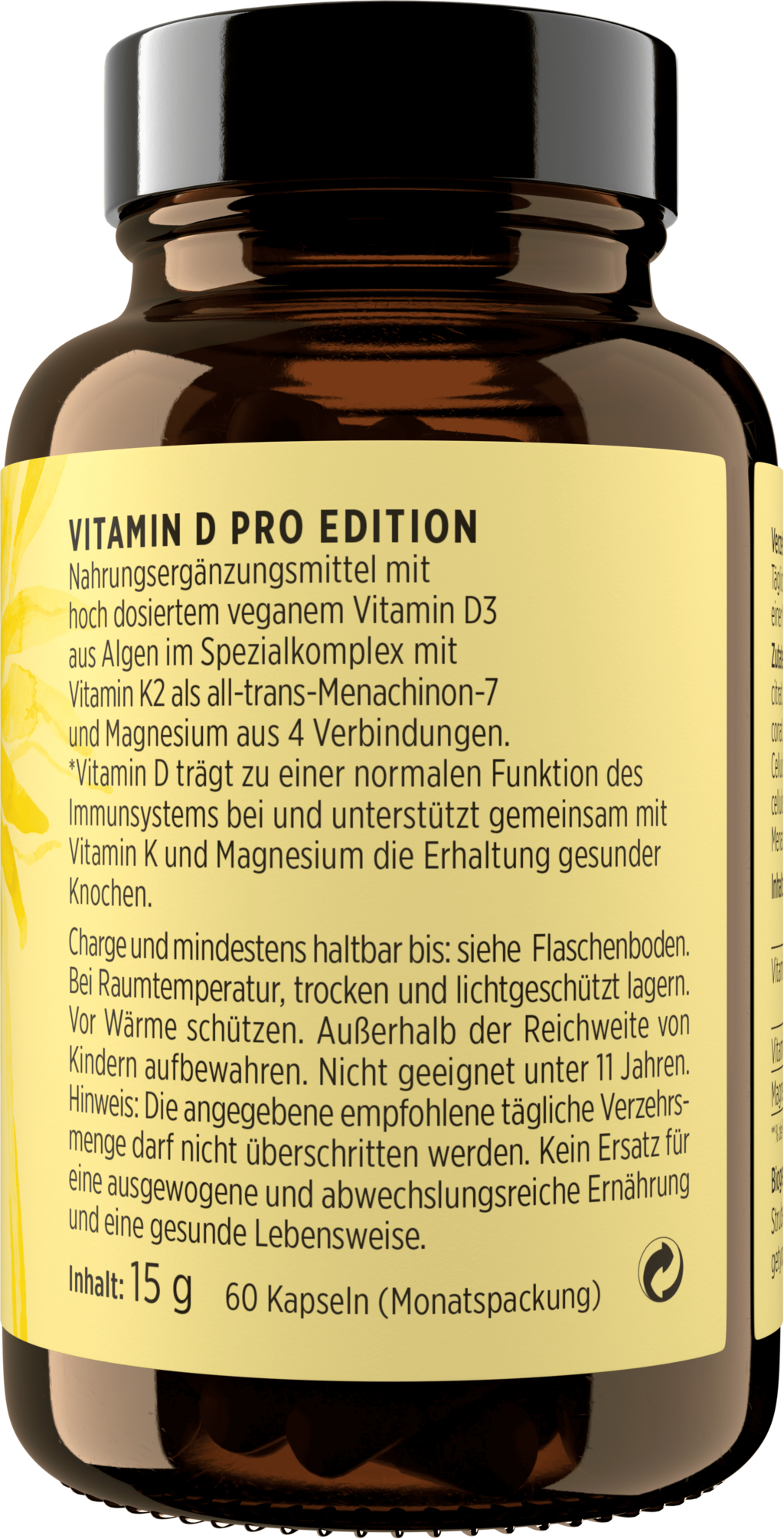 VITAMIN D PRO EDITION pruža podršku veganskim vitaminom D3 visoke doze iz algi, poznatim i kao vitamin Sunca, u specijalnom kompleksu s vitaminom K2 te magnezijem iz četiri spoja.