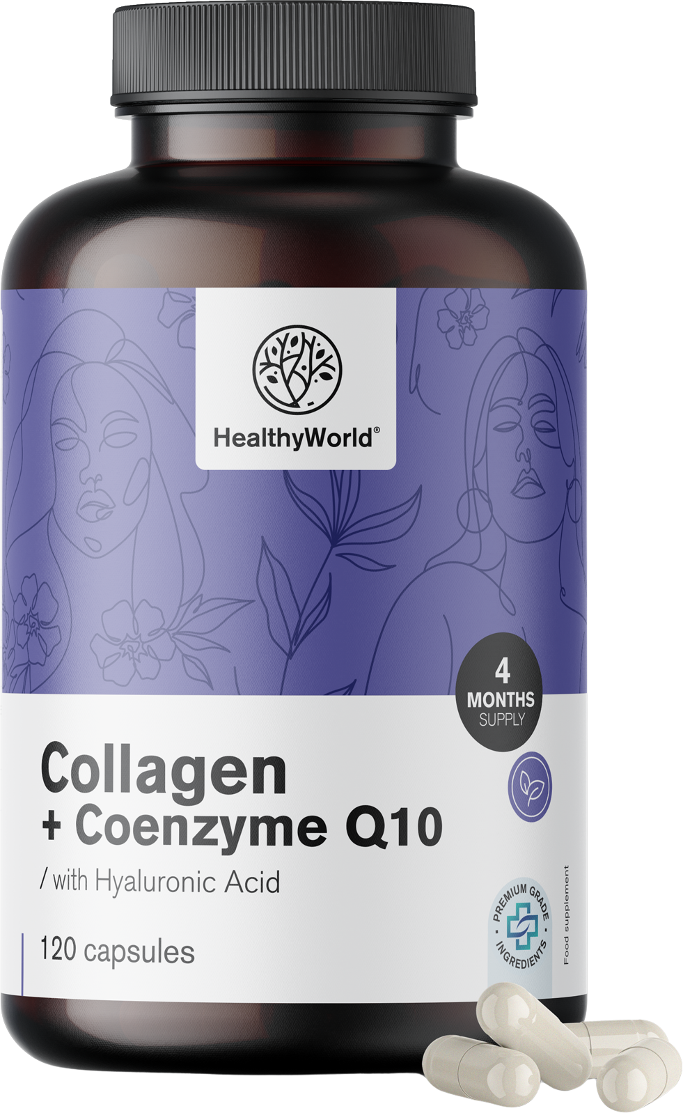 HealthyWorld Collagen + Coenzyme Q10 + Premium Hyaluronic Acid, 120 kaps.