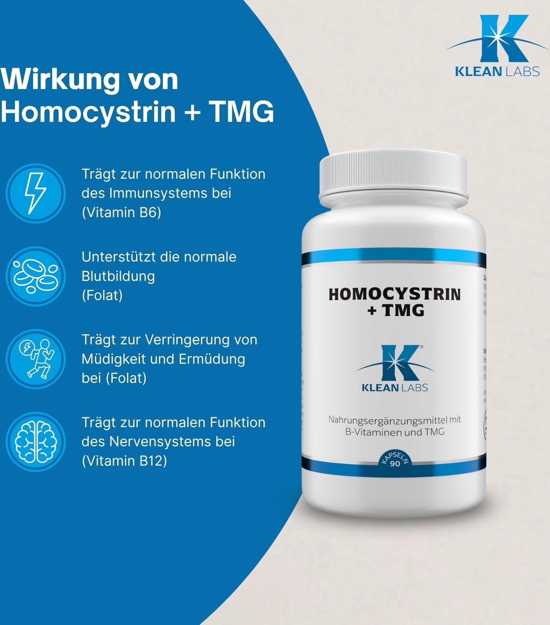 Homocystrin + TMG kapsule KLEAN LABS-a su dodatak prehrani koji sadrži ekskluzivnu mješavinu aktiviranih B vitamina, trimetilglicina, magnezija i folne kiseline.
