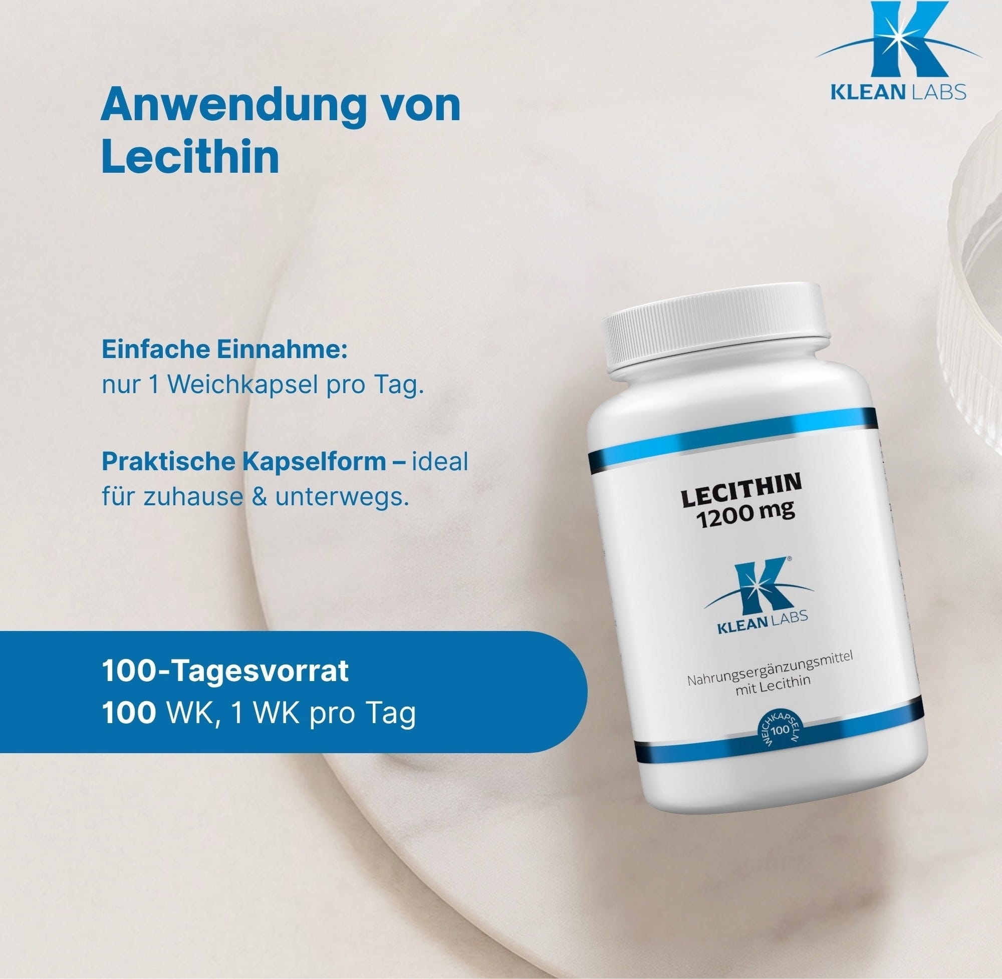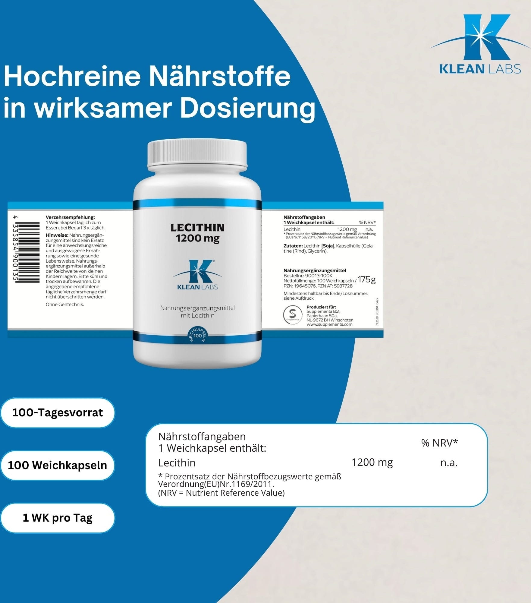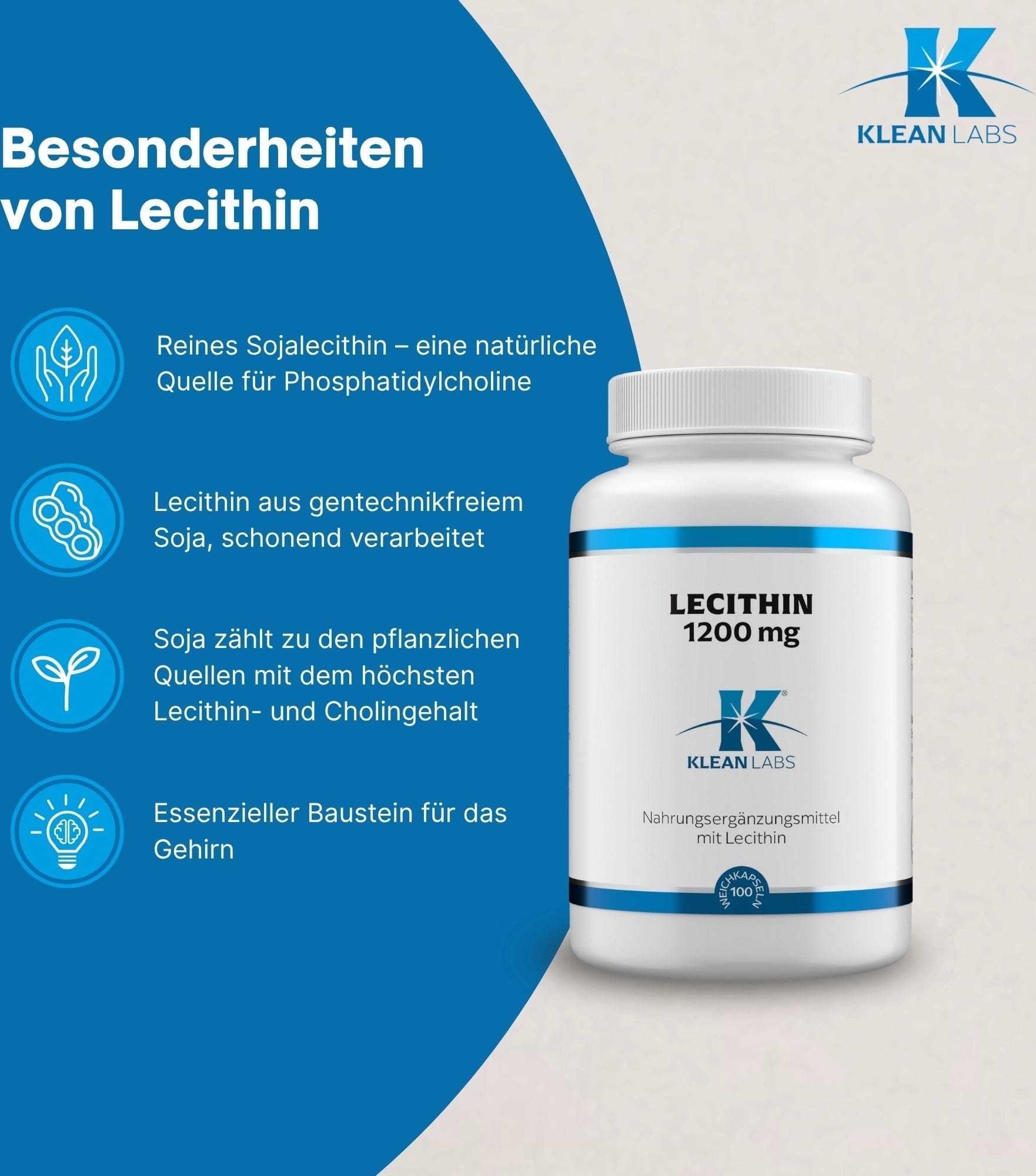 KLEAN LABS Lecitin 1200 mg, 100 Gel-kapsule