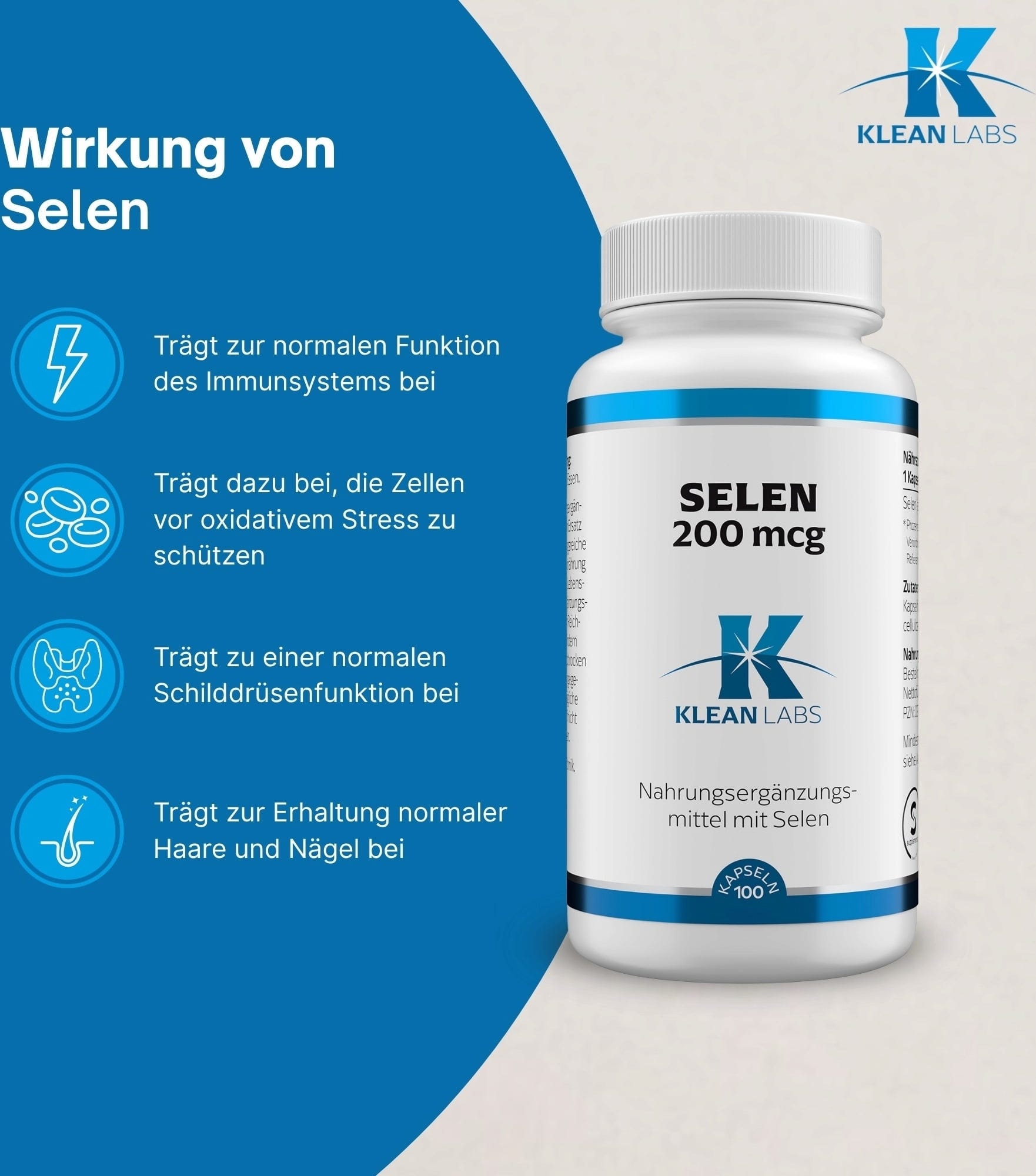 KLEAN LABS Selen 200 mcg, 100 kaps. € 19,89 (€ 537,57 / kg)