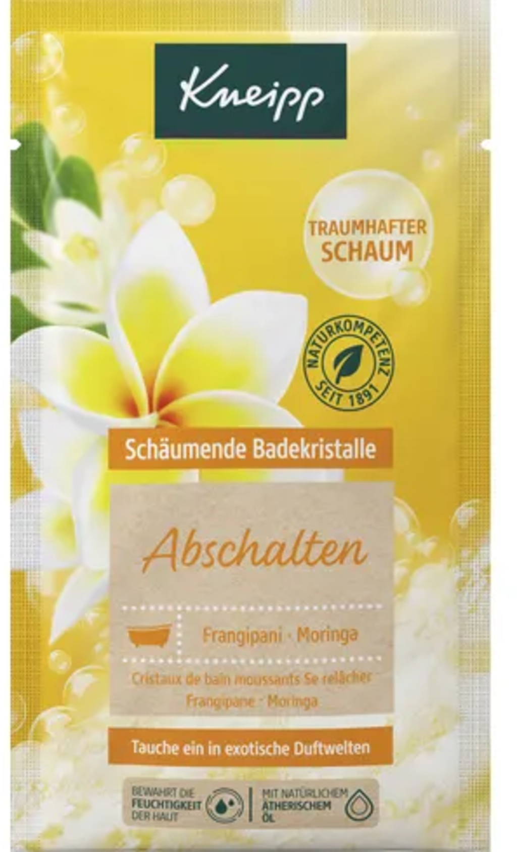 Ovi intenzivno pjeneći kristali za kupku obećavaju posebno senzualno iskustvo kupanja. Tropski ekstrakt frangipanija i bogato ulje moringe maze kožu. Egzotičan miris predstavlja pravu feštu za osjetila.
