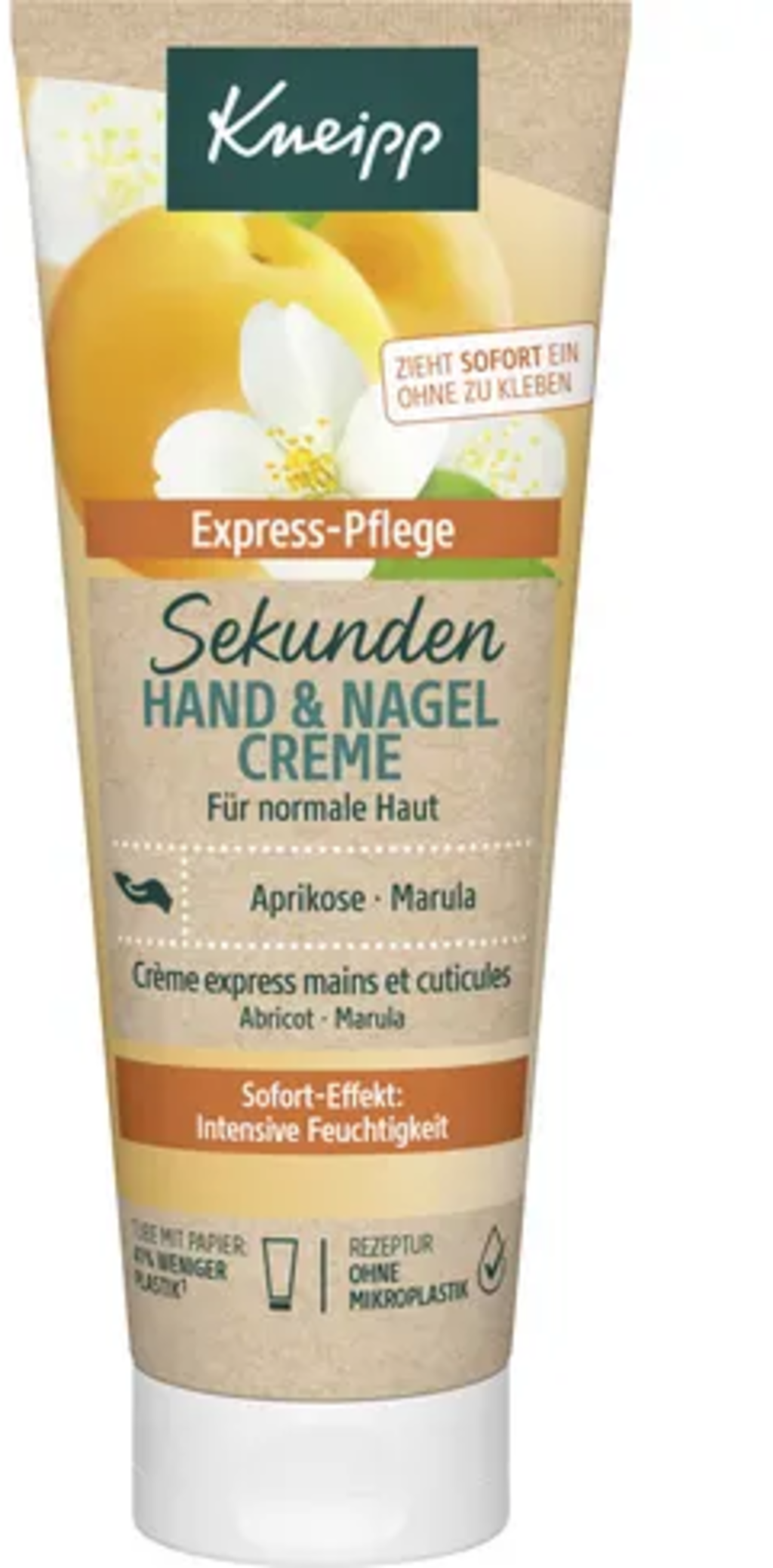 Za samo nekoliko sekundi natrag do mekanih ruku i njegovane kožice oko noktiju - jer ekstrakt marelice i marula ulje pružaju intenzivnu hidrataciju. Krema se uz to brzo upija i ostavlja ugodan osjećaj.