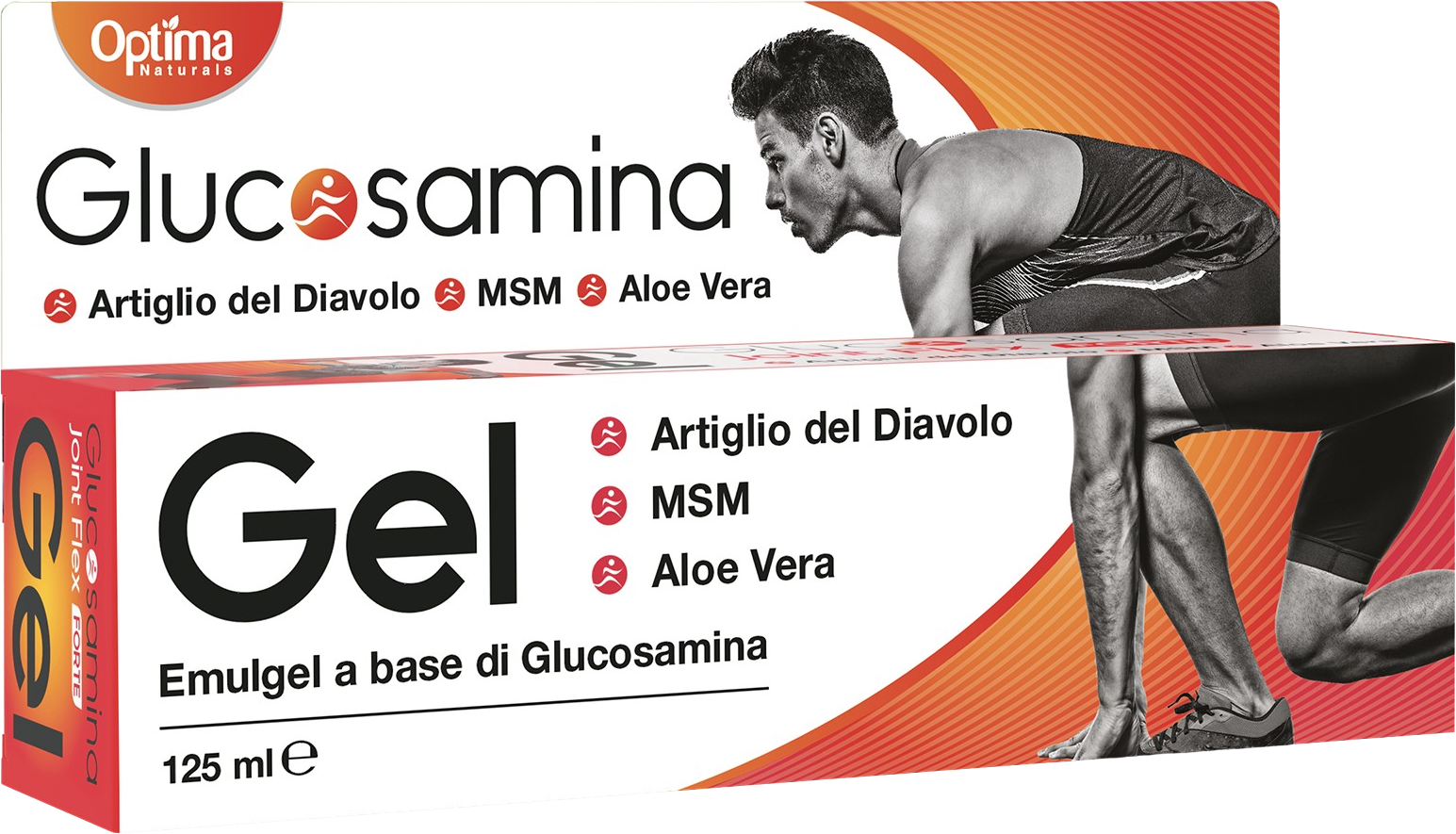 Gel za zglobove marke Optima Naturals sadrži glukozamin, vražju kandžu, MSM (metilsulfonilmetan) i aloe veru. Sadrži također i mentol, bor, naranču i ružmarin.