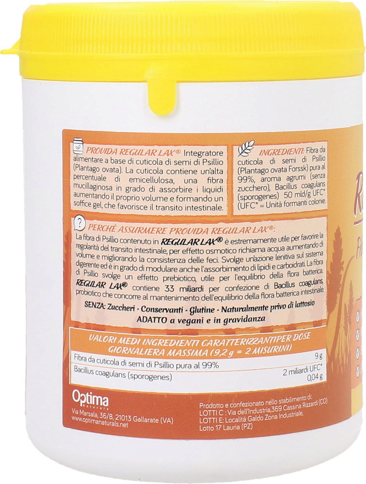 Provida Regular LAX tvrtke Optima Naturals je dodatak prehrani na bazi 99% vlakana psylliuma obogaćenog Bacillus coagulansom.