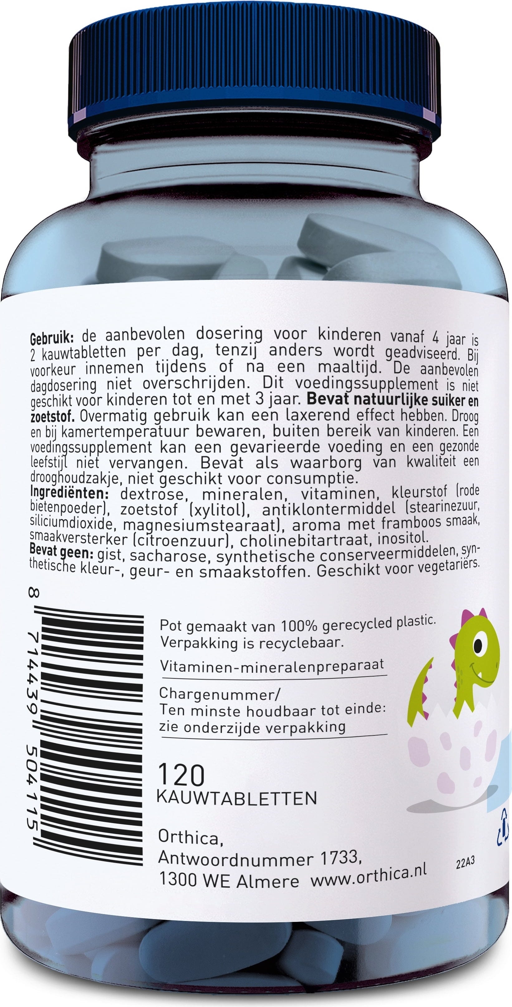 Za djecu od 3 godine, Orthica je pripremila dodatak prehrani sa svim važnim vitaminima i mineralima. Dino Multi je tableta za žvakanje s okusom maline u obliku smiješnog dinosaurovog jaja.