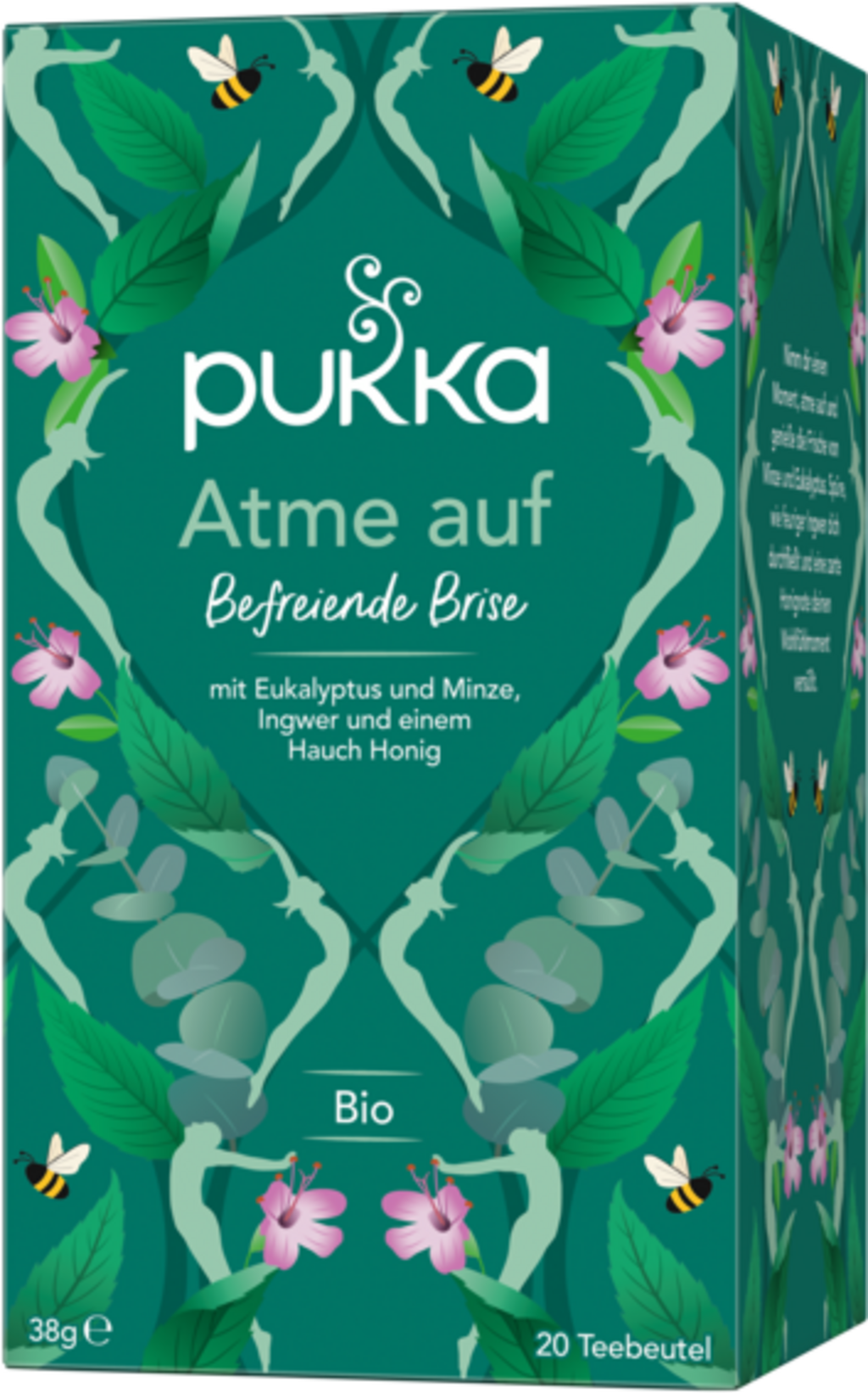 Ovaj skladno sastavljen biljni čaj nudi savršeni užitak da se jednostavno opustite i duboko dišete. Osvježavajući okus budi osjetila i nadahnjuje vas čak i po tmurnom vremenu. Snažne note eukaliptusa, metvice i vatrenog đumbira oplemenjene su nježnom notom meda i osiguravaju intenzivan, aromatičan doživljaj.