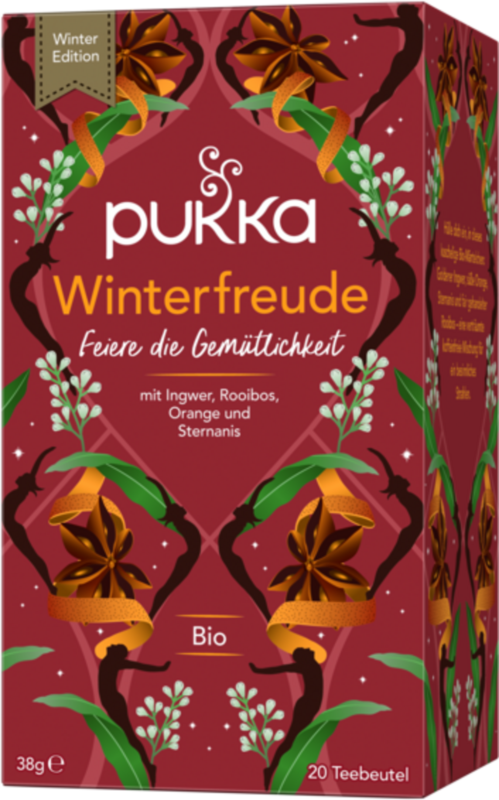 Zimska mješavina s đumbirom, rooibosom, koricom naranče i zvjezdastim anisom očarava vaša osjetila i čini hladnu sezonu posebnim iskustvom. Ukusna aroma stvara snenu i opuštajuću atmosferu.
