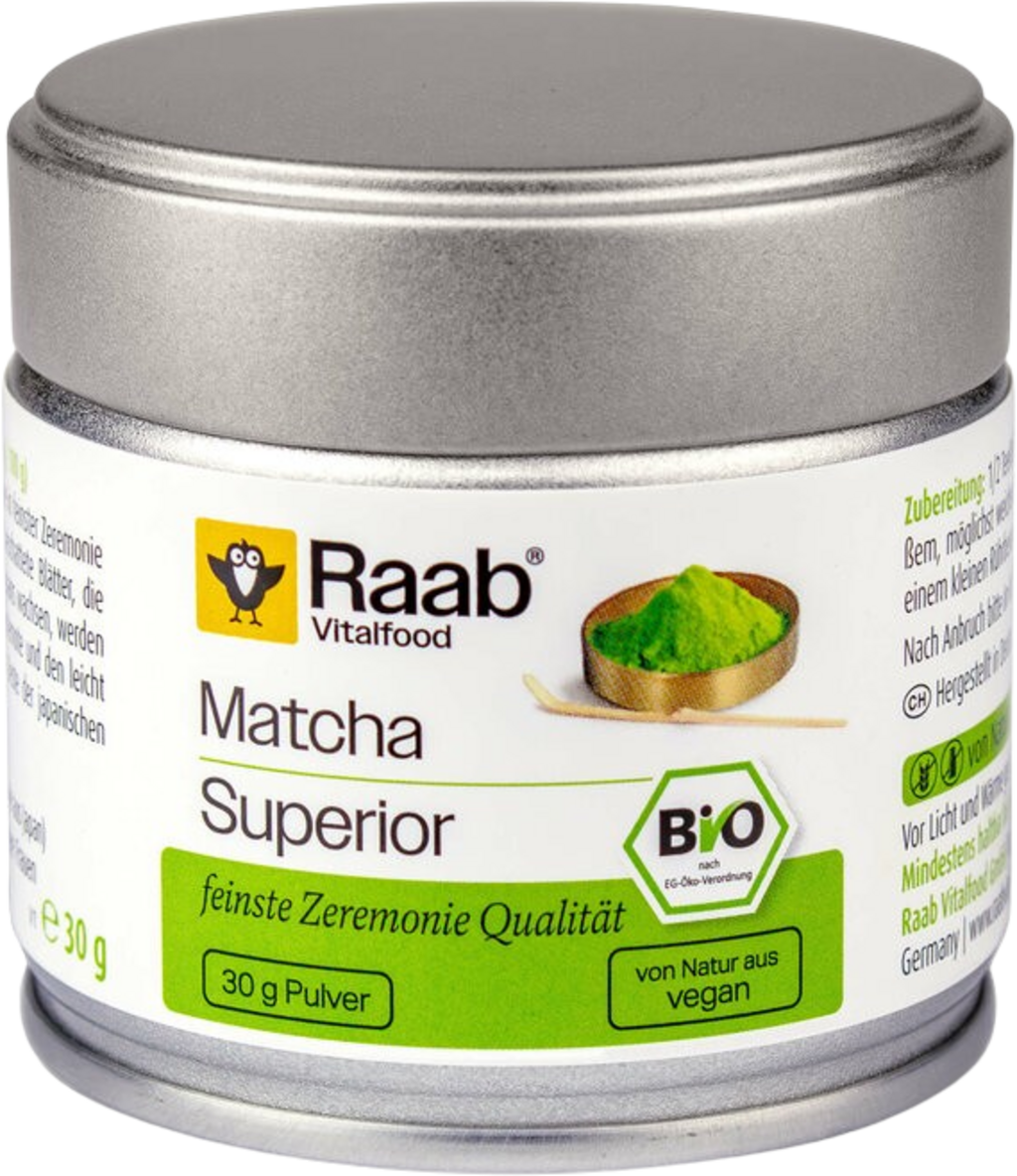 Raab Vitalfoodov BIO Matcha zeleni čaj u prahu Superior napravljen je od najfinijih, ručno ubranih listova dugih sjena uzgojenih na certificiranim organskim plantažama u južnom Japanu. Čaj ima nježnu gorku notu s blago slatkim okusom. Savršen je za iskusne ljubitelje zelenog čaja koji žele uživati u visokokvalitetnoj matcha kulturi.