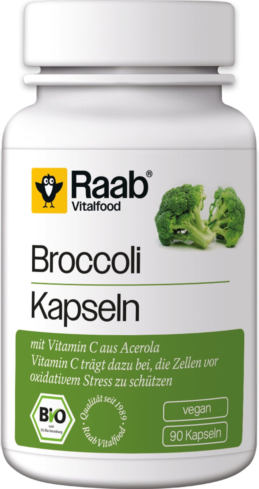 Oslanjajte se na visokokvalitetne organske kapsule brokule tvrtke Raab Vitalfood. Kapsule sadrže pažljivo obrađenu organsku brokulu uzgojenu u Njemačkoj i vitamin C iz acerola trešanja - idealno za svjesnu prehranu u svakodnevnom životu. Ovojnica kapsule na biljnoj bazi je veganska i bez dodataka životinjskog podrijetla.