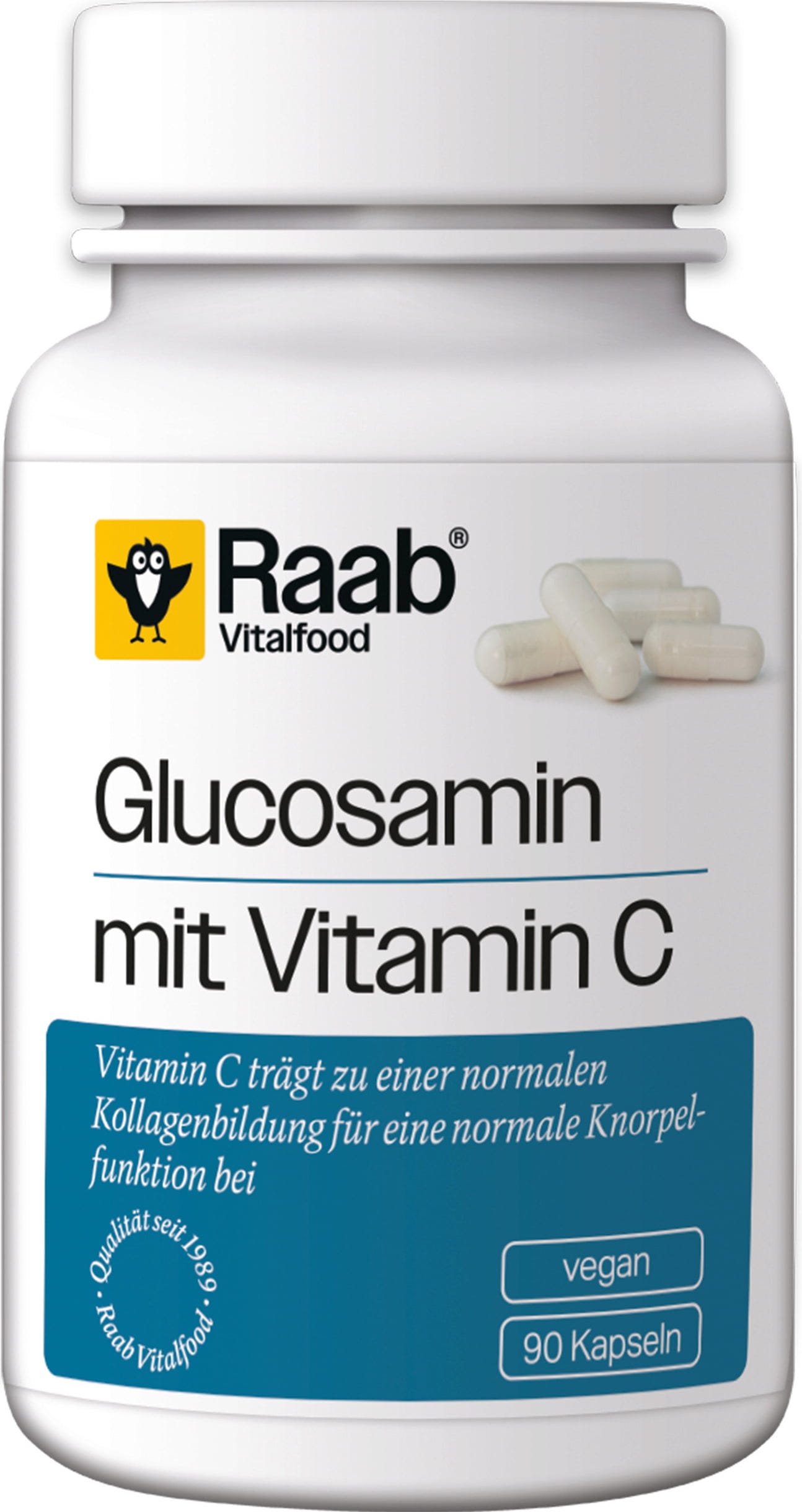 Glukozamin s vitaminom C u kapsulama tvrtke Raab Vitalfood je kombinacija glukozamina (glukozamin sulfat 2KCl) i vitamina C, isključivo na biljnoj bazi, u veganskoj HPMC kapsuli. Idealno za sve koji cijene biljnu prehranu. Dnevna doza (2 kapsule) sadrži 700 mg glukozamina i 186 mg vitamina C - potpuno bez sastojaka životinjskog podrijetla.