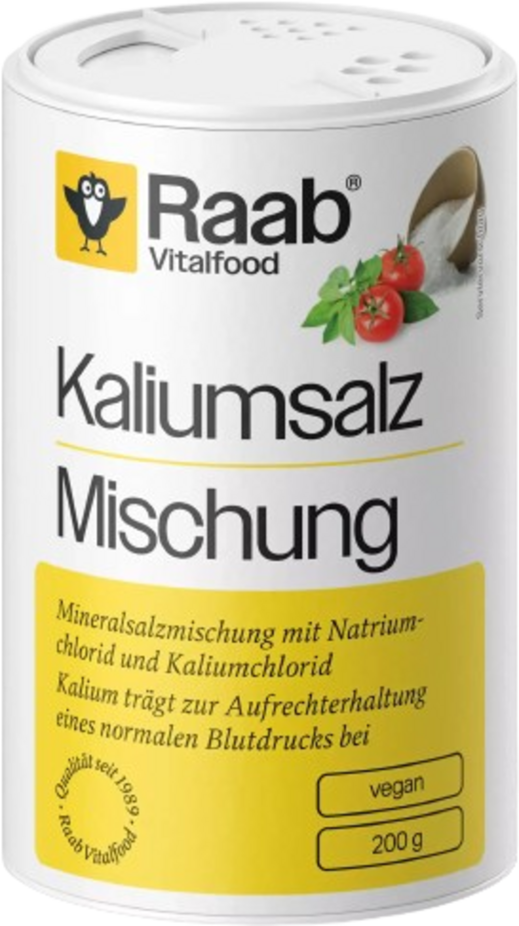 Mješavina kalijeve soli Raab Vitalfood sadrži mješavinu mineralne soli sa 66,7% kuhinjske soli (natrijev klorid) i 33% kalijevog klorida. Savršena je alternativa običnoj kuhinjskoj soli i može se koristiti u svim jelima i jelima.