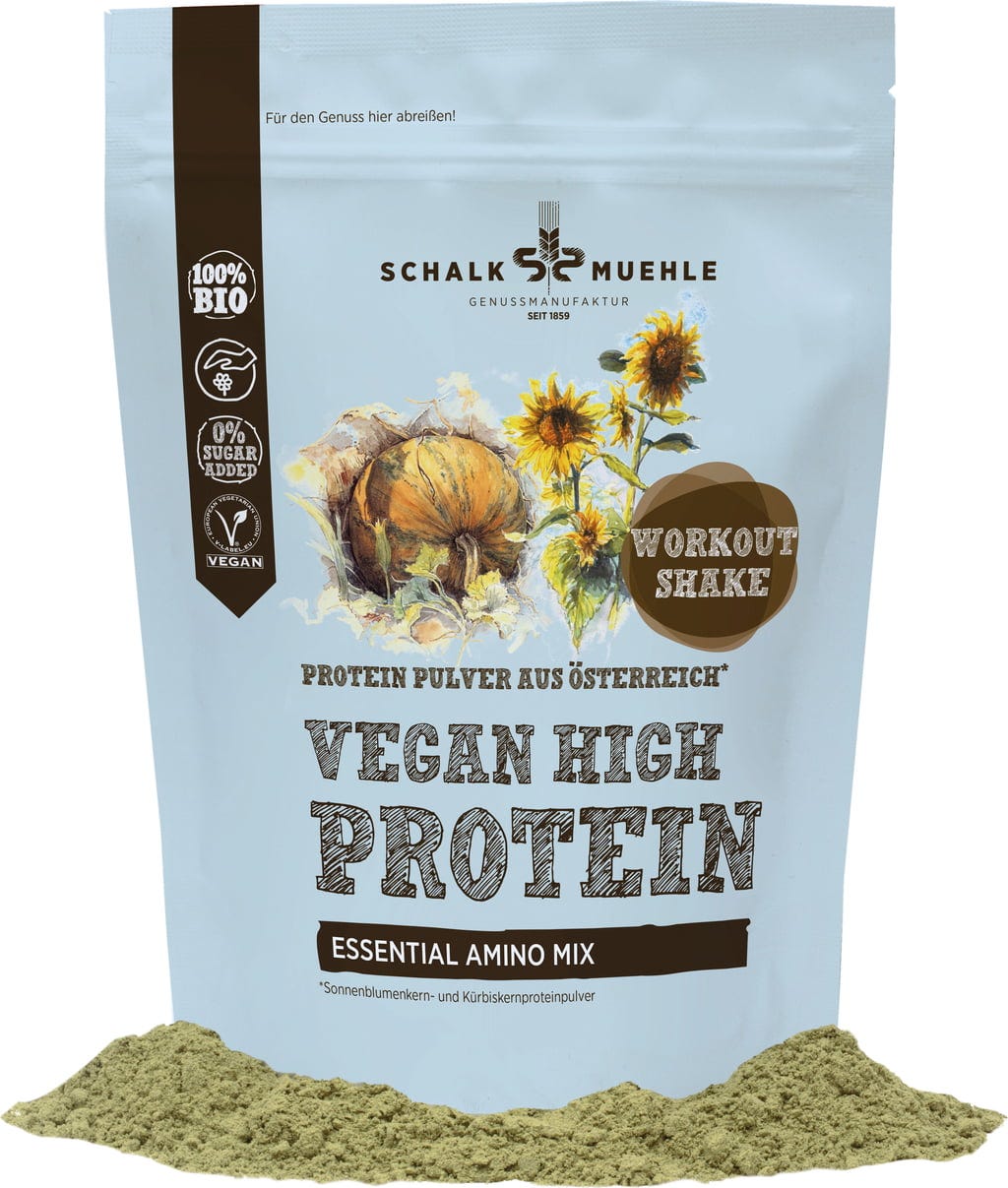 Kombinacija austrijskih bučinih i suncokretovih sjemenki opskrbljuje vaše tijelo sa svim esencijalnim aminokiselinama. Već 30 g dovoljno je da pokrijete 29 % svojih dnevnih potreba. Tome se pridružuje i izvanredan udio bjelančevina od gotovo 60 %. Bilo prije ili poslije intenzivnog treninga, kao brzopotezni shake za međuobrok ili kao obogaćivanje vaših jela – s ovim biljnim miksom s lakoćom ćete postići svoje dnevne potrebe za proteinima.