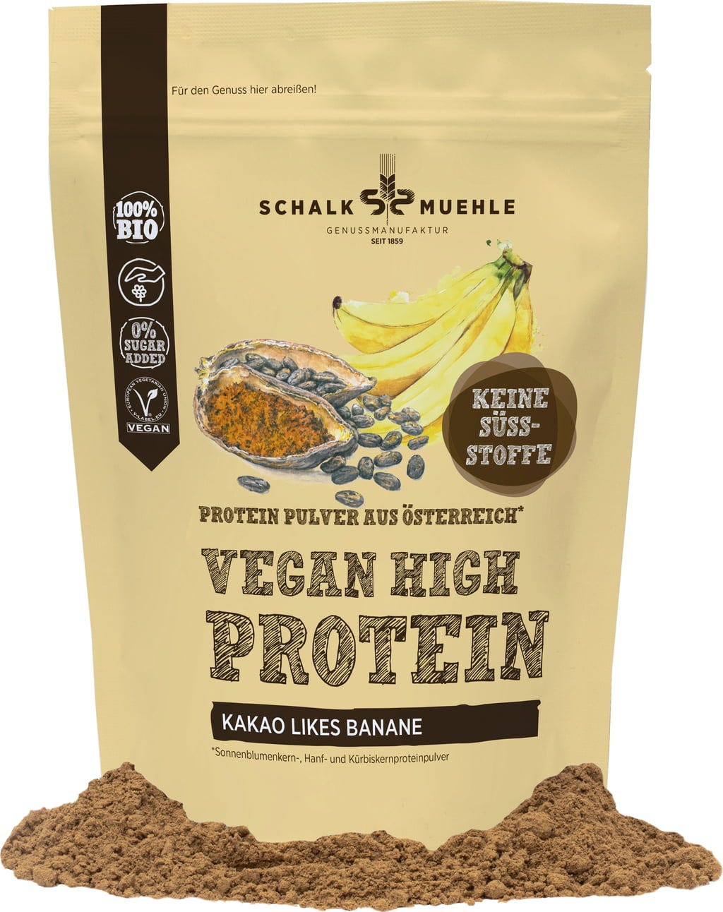 Bazu ovog visokokvalitetnog proteina u prahu čine regionalni izvori biljnih bjelančevina poput sjemenki konoplje, bučinih i suncokretovih sjemenki, oplemenjeni visokokvalitetnim prahom kakaa i banane za ugodno sladak okus čokolade i banane. Bilo kao shake, u jogurtu, kao sastojak za pečenje muffina, vafla, palačinki ili kolača – ovaj protein u prahu jednostavno ima fantastičan okus gdje god se nađe.