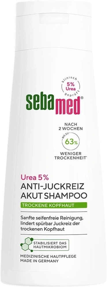 Sebamed Urea Akut 5% šampon idealan je za suhu kosu i suho vlasište koje svrbi. Vlaži kožu i kosu te može pomoći u smanjenju svrbeža. Formula je bez mikroplastike i certificirana ECARF pečatom kvalitete, koji identificira proizvode koji su prikladni za kožu sklonu alergijama.