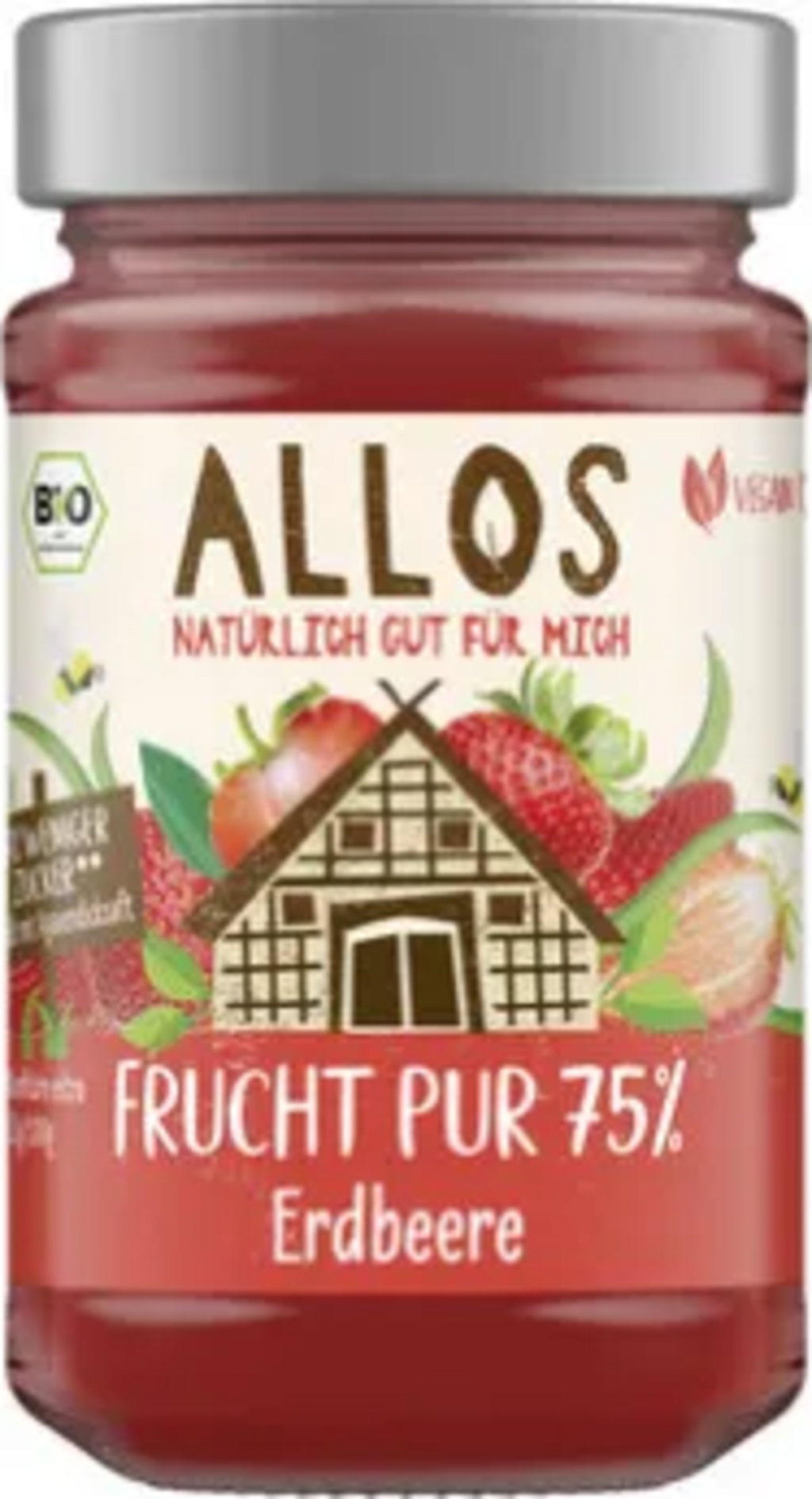 Čisti voćni okus za vaš kruh za doručak: ALLOS to sada omogućava svojim Bio čisto voće 75 % namazom. Za ovu sortu pažljivo se prerađuju ručno brane, na suncu dozrele jagode i zaokružuju slatkoćom sirupa od agave. Vegansko i s 57 % manje šećera.