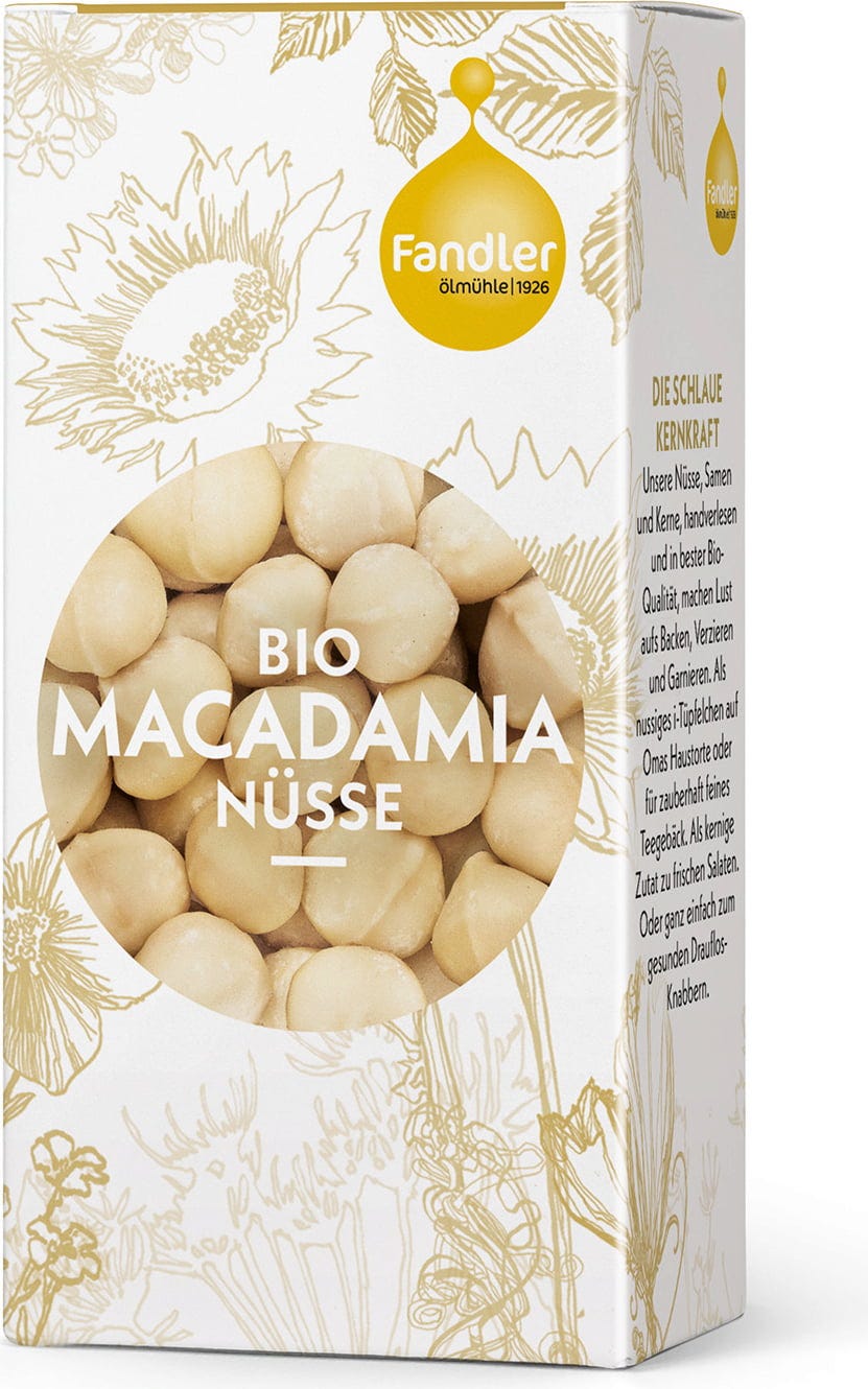 Ekološke makadamija oraščiće uljare Fandler možete, naravno, jednostavno samo grickati. Ili njima možete obogatiti brojna jela, jer makadamija ima sasvim posebnu aromu s kremastim orašastim okusom. Ovi se oraščići sjajno snalaze i u pestima te tamo osiguravaju ugodan, blag i orašast okus.