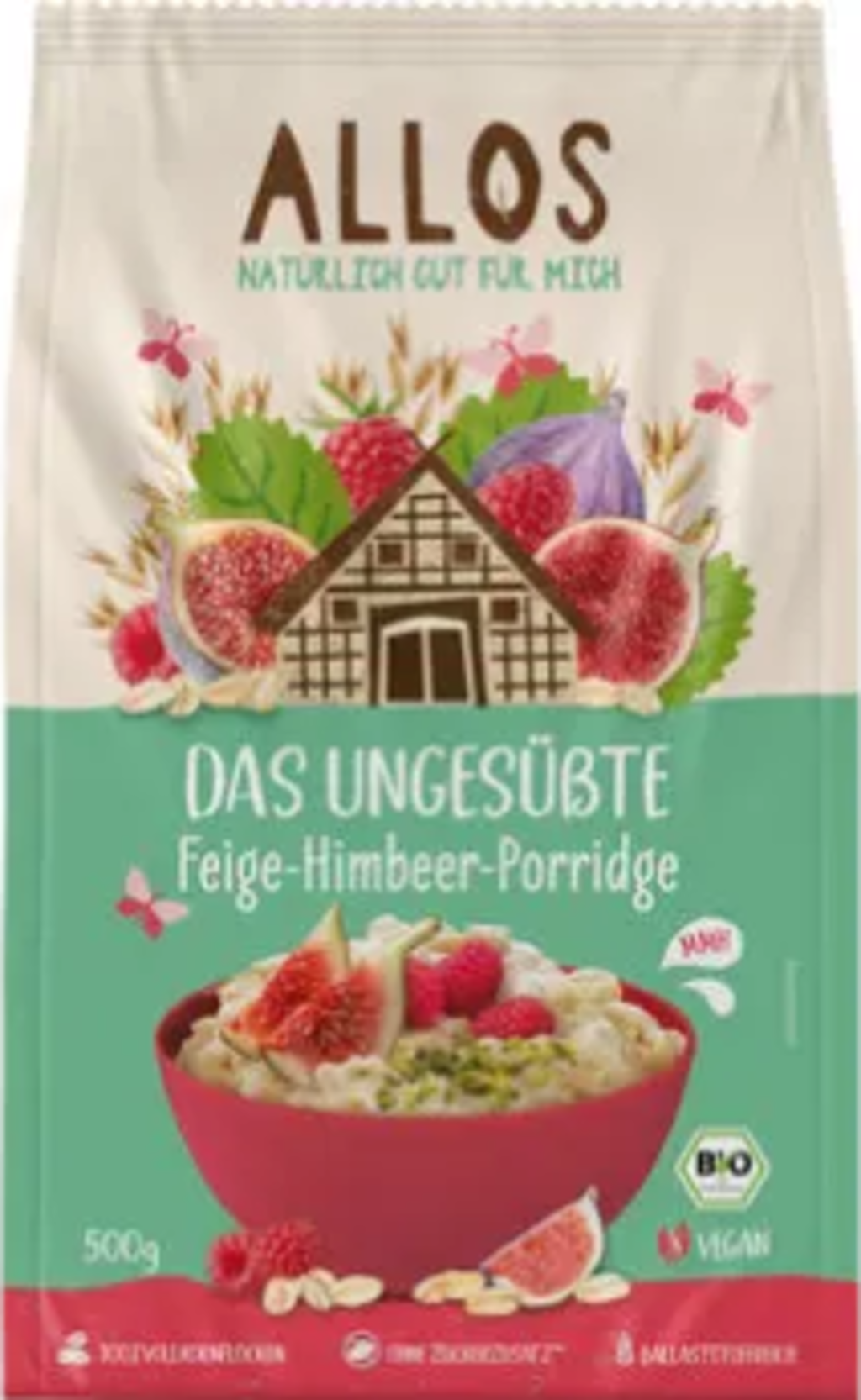 Prepun ukusnih sastojaka poput integralnih zobenih pahuljica, smokava, grožđica (sultanina) i malina, slatkoća vam uopće neće nedostajati. Nezaslađena kaša od smokve i maline tvrtke ALLOS proizvodi se od 100 % integralnih pahuljica i sadrži mnogo dijetalnih vlakana. Za dobar i nekompliciran početak dana.