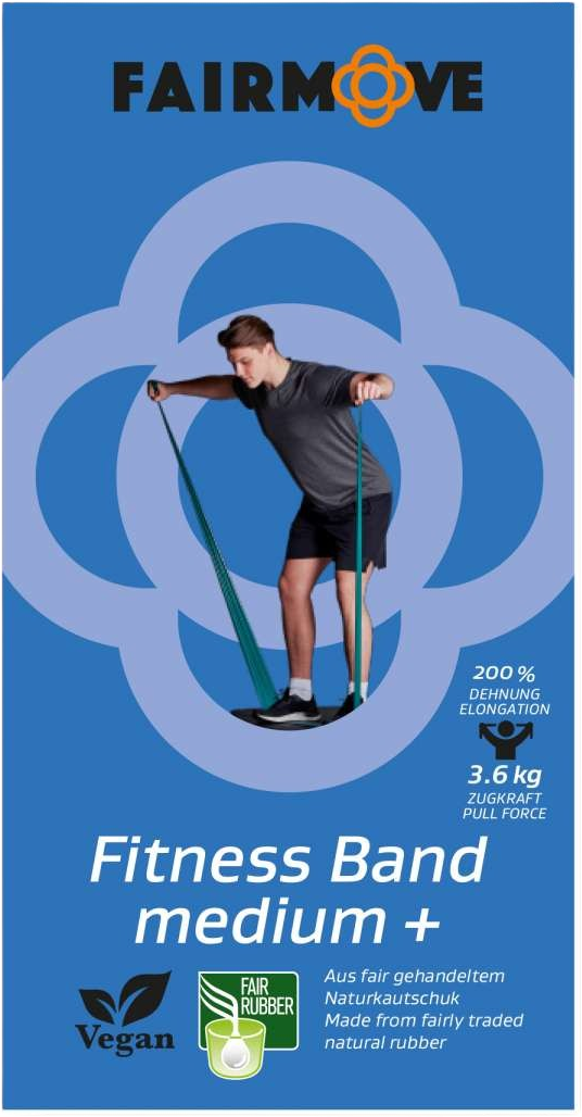 Bilo da želite povećati svoju snagu ili revolucionirati svoju pokretljivost – FAIR MOVE fitness traka pruža Vam intenzitet koji Vaš trening zaslužuje. Vi odlučujete o savršenoj vlačnoj sili za svoju naprednu sportsku razinu. S dimenzijama od 200 cm duljine i 12 cm širine, ova je traka Vaš idealan suputnik za učinkovite vježbe iz pilatesa, joge i crossfita. Dodatnu inspiraciju potražite na pakiranju putem QR koda! No, ono najbolje je: trenirate s proizvodom koji se sastoji od 100 % pravednog prirodnog kaučuka sa Šri Lanke, potpuno je veganski i ne sadrži plastifikatore. Ova izdržljiva traka odolijeva svakom izazovu i predstavlja održivu izjavu za Vaše tijelo i okoliš.
