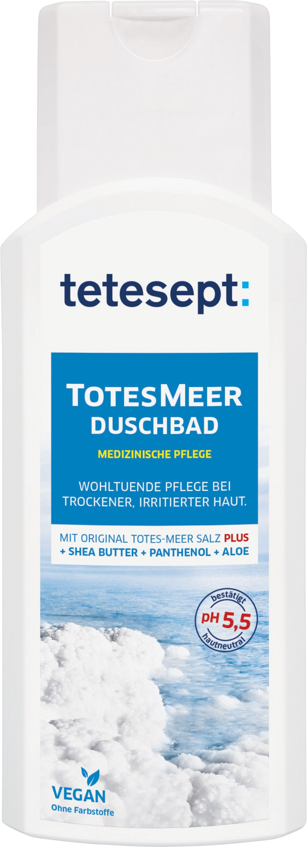 Gel za tuširanje Mrtvo more marke tetesept idealan je za sve sa suhom ili nadraženom kožom. Njegova formulacija nije samo veganska i pH neutralna, već i vraća masnoću te je bogata sastojcima koji njeguju kožu poput shea maslaca, pantenola i aloe vere.