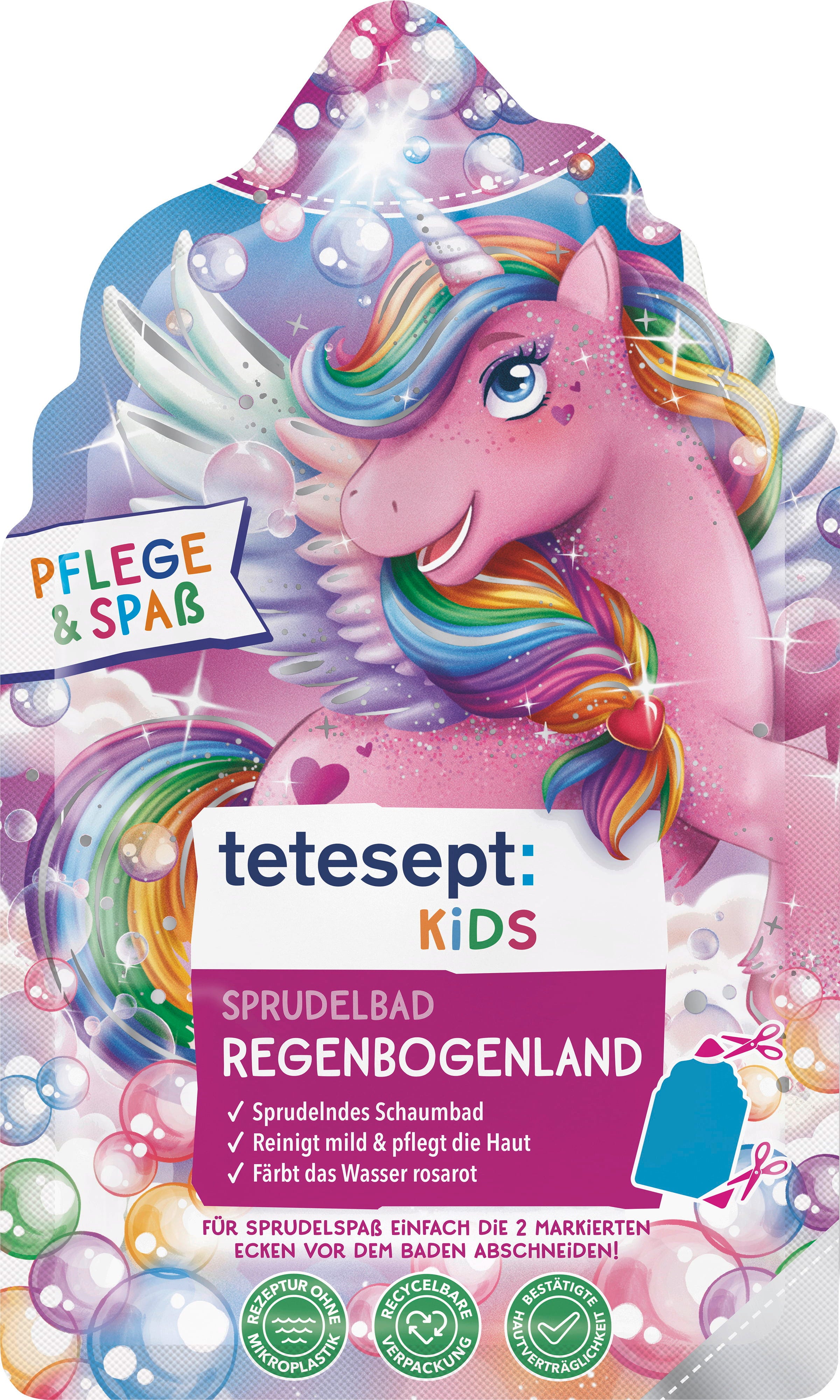 Uz šumeću kupku Zemlja duga marke tetesept darujete svojoj djeci od 3. godine predivnu zabavu kupanja!