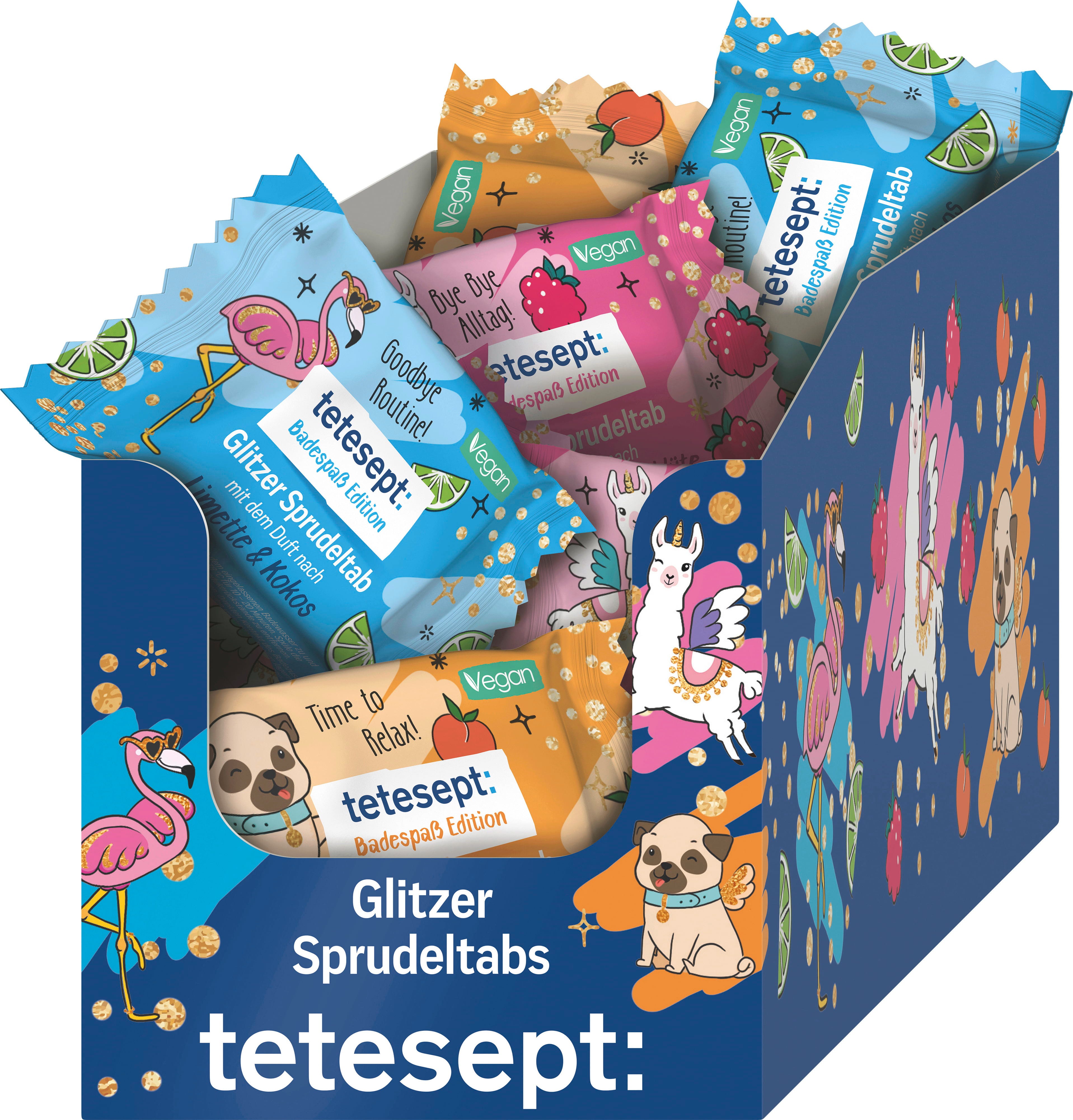 Dosta vam je dosadnih kupki? Osigurajte si svjetlucavu šumeću kupku marke tetesept i pretvorite svoju kadu u svjetlucavu oazu! Šumeća tableta je veganska i bez mikroplastike, tako da se možete veseliti bezbrižnoj zabavi kupanja!