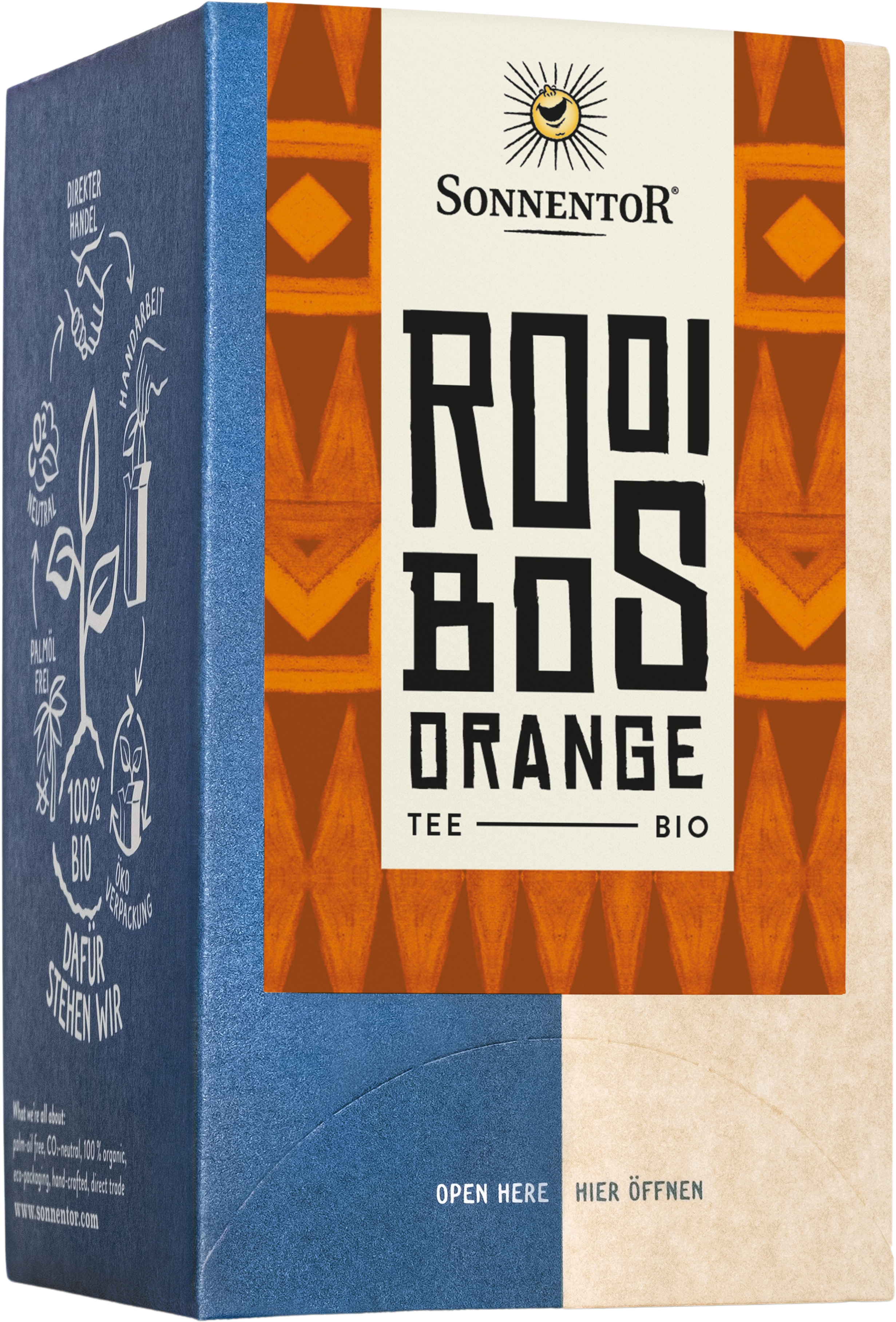 Dvije srodne duše napokon su se pronašle: Bogati rooibos čaj i gorkasto-slatka naranča – početak velike romanse za ljubitelje čaja! Voćne note dobivene iz eteričnog ulja naranče i njenih kora savršeno se sljubljuju sa zemljano-slatkom aromom rooibosa. Uz osvježavajuće ljetne deserte ili poslužen kao hladan ledeni čaj s komadićima voća, ove arome pokazuju svoju pravu moć.