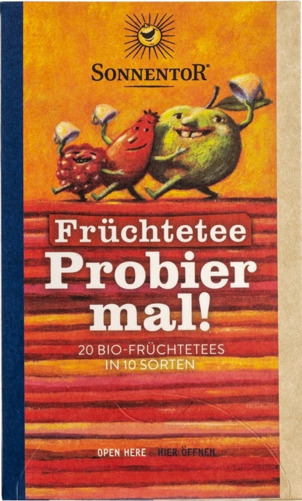 Ova predivna raznolikost voćnih čajeva ono je pravo za sve one koji se ne mogu odlučiti pa bi jednostavno htjeli sve isprobati. S 10 različitih vrsta, Bio voćni čaj 'Probier mal!' od tvrtke Sonnentor omogućuje Vam da okusite svoj omiljeni voćni čaj. Razmazite svoje nepce svakom vrstom dvaput - kako biste doista bili sigurni.