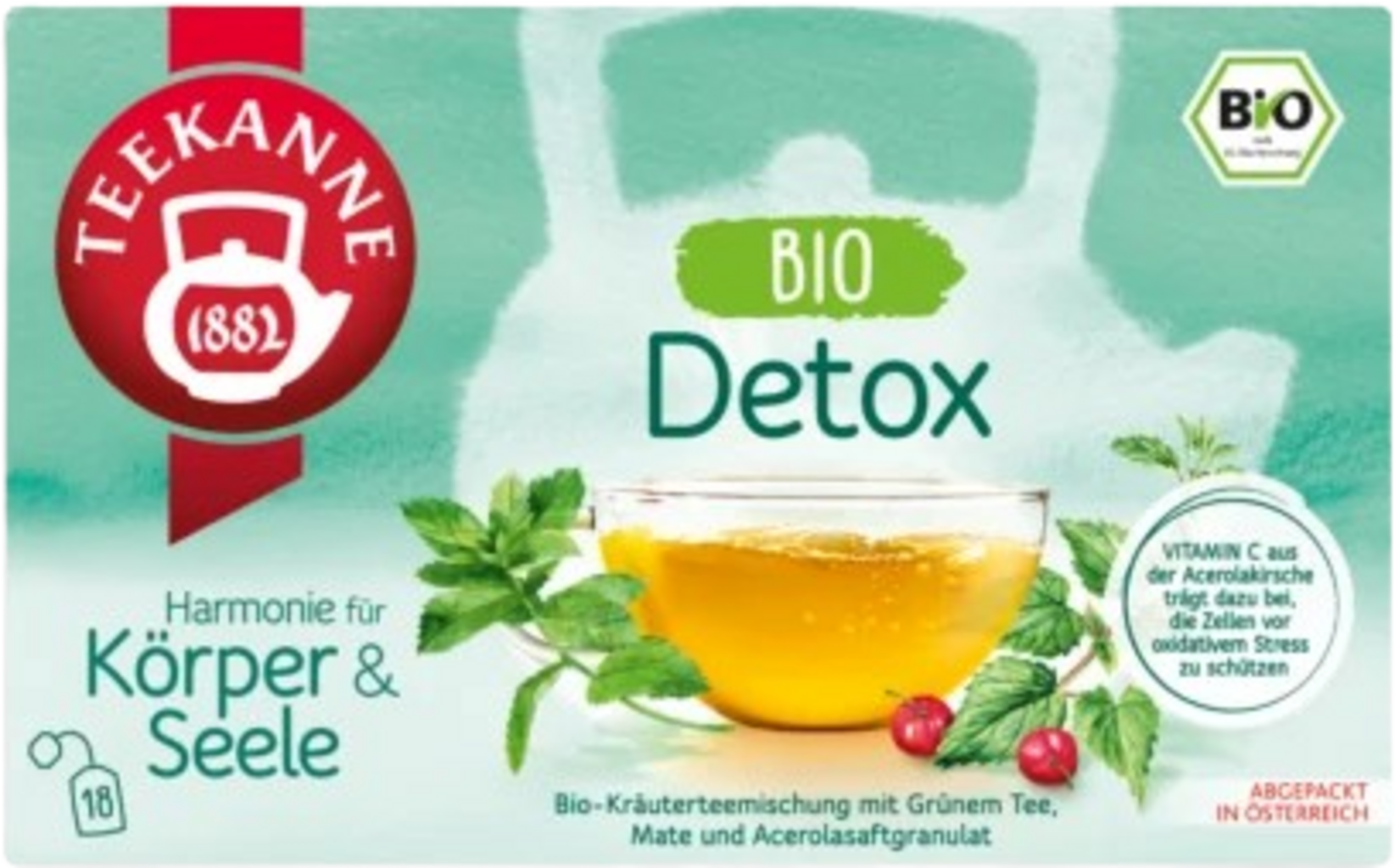 Uz razne vrste mente, zelenog čaja i listova mate, ova uzbudljiva mješavina bio biljnog čaja sadrži i acerolu, bobice aronije, limunsku travu i kurkumu.