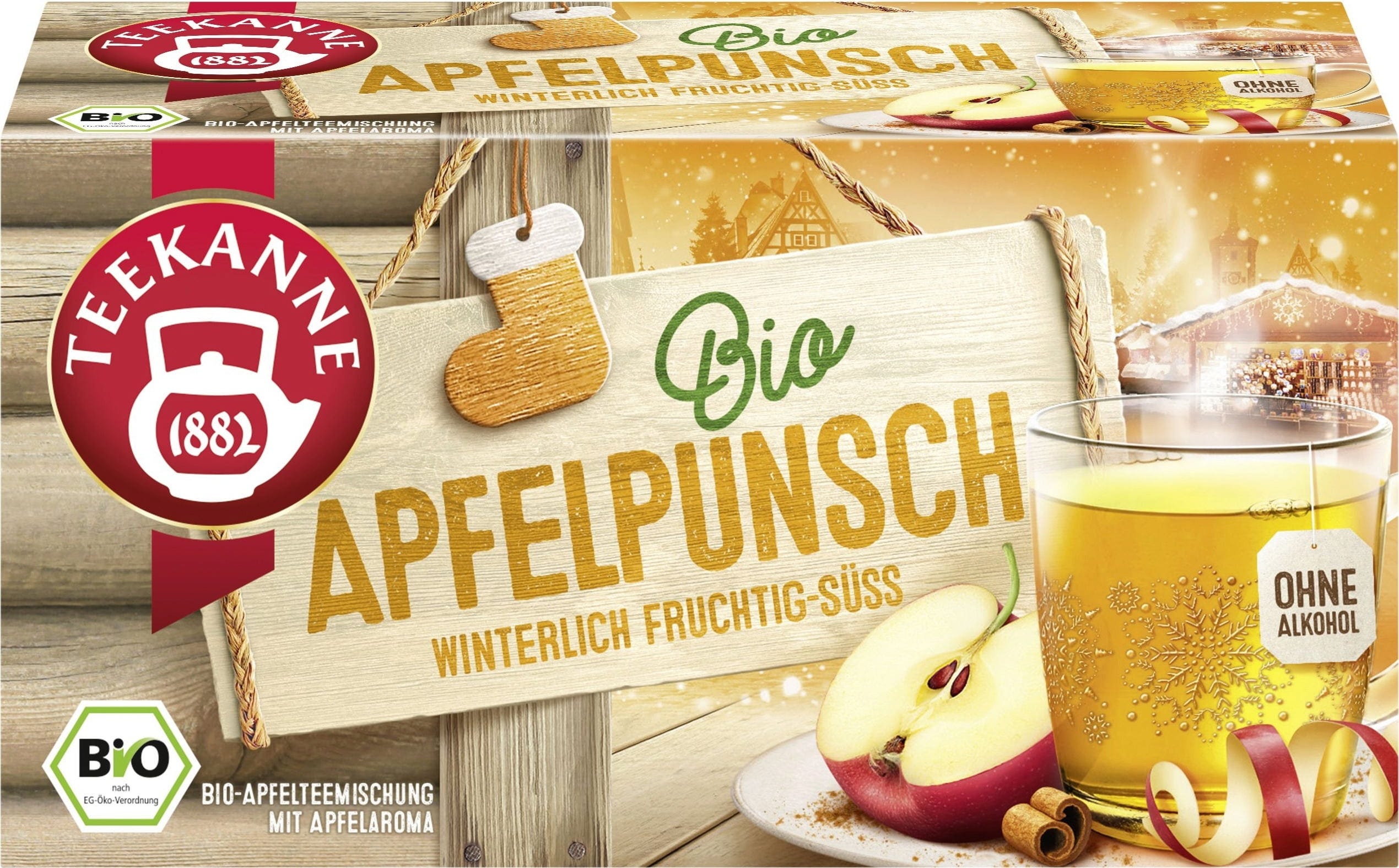 Kada vani vlada hladnoća, TEEKANNE Bio zimski čaj punč od jabuke osigurava udobnost. Voćni okus zrelih jabuka sjedinjuje se s aromatičnim začinima u zimski trenutak uživanja. Bilo poslijepodne ili navečer ušuškani na kauču – ovaj čaj čini zimsko vrijeme još ljepšim.